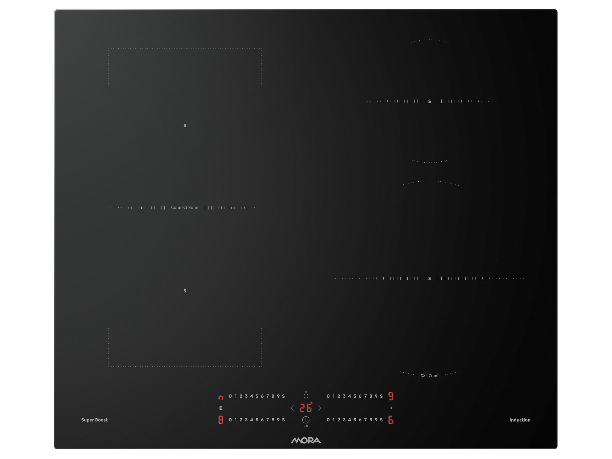 Ovládání varné desky MORA je maximálně intuitivní. Citlivé senzory umožňují plynulé nastavení výkonu jemným pohybem prstu v obou směrech
