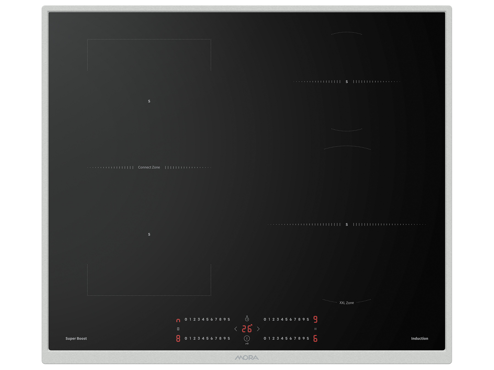 Ovládání varné desky MORA je maximálně intuitivní. Citlivé senzory umožňují plynulé nastavení výkonu jemným pohybem prstu v obou směrech